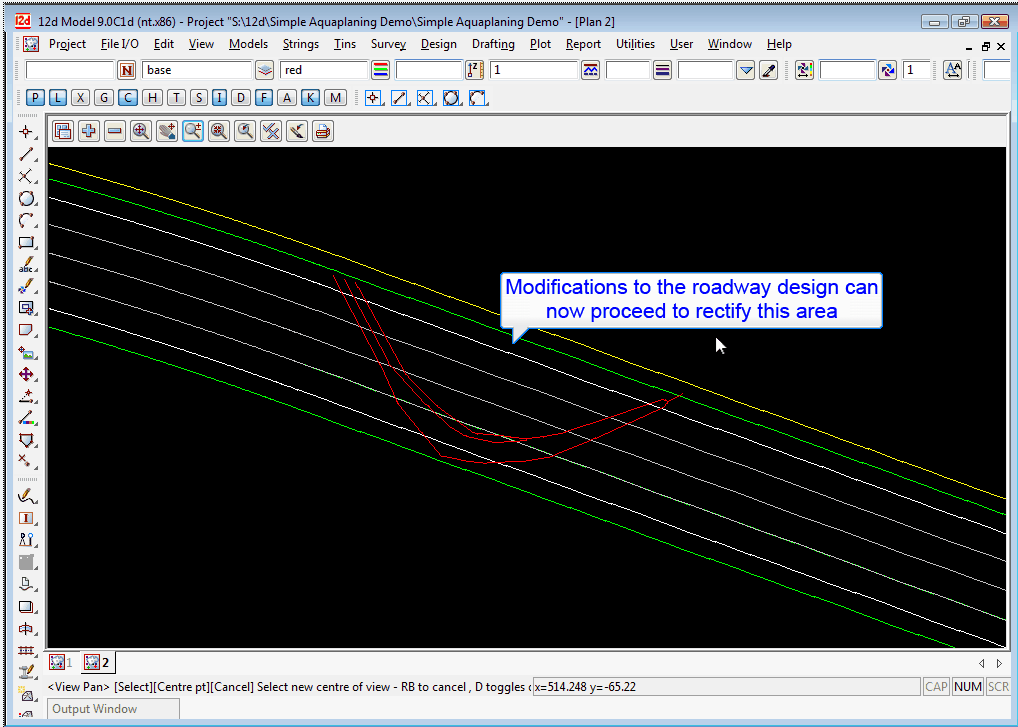 See below for an example of how an aquaplaning risk assessment can be completed from a 12d tin, and then the results imported back into 12d to assist in the re-design of the roadway.