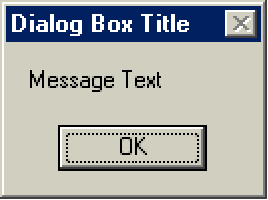 The MessageBox command simply displays information to the user. The message text may take the form of pre-defined text or display a project variable or user variable's value.