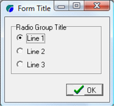 The radio group operates similarly to the ComboBox dialog. In general, the ComboBox should be used when selecting between a large number of options whereas the Radio Group may be more appropriate for a small number of options.