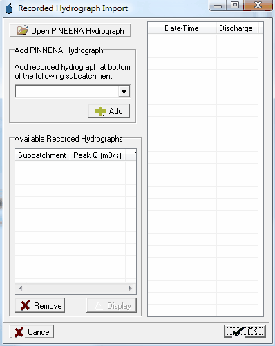 ' button in the 'Recorded Hydrographs' section of the page. This will open the 'Recorded Hydrograph Import' window, which is shown below: