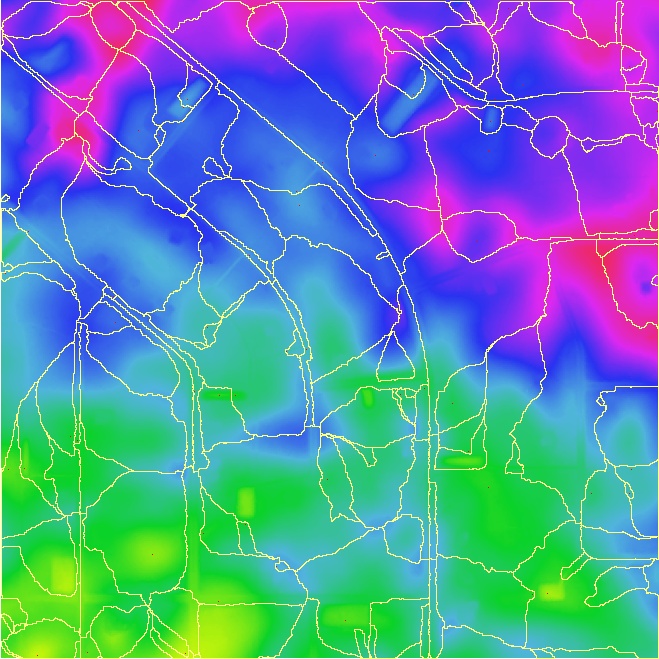 Next basin boundaries need to be defined for each flat and pit pixel so that drainage characteristics can be calculated, as shown below. This can be completed by selecting Subcatchments >> Map All.