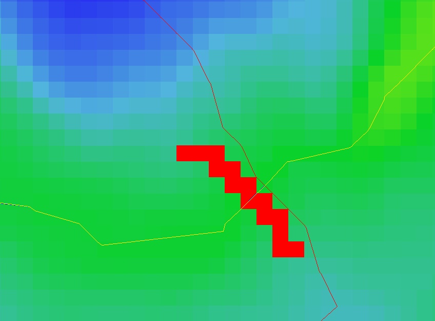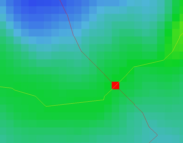 The Optimise Individual Subcatchment Outlet menu option will optimise a selected subcatchments outlet pixels to the minimum number of pixels required to describe the flowpaths out of the subcatchment.