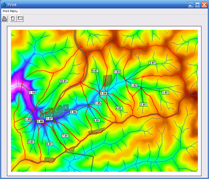 The print preview form allows you to visually select between portrait and landscape model and access the print manager form in order to change printers, paper sizes etc. This form can be accessed from the CatchmentSIM Drop Down >> Print menu or the Print Chart button on the Chart Wizard form.