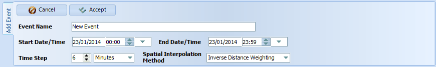 •Define an historic rainfall event including start/end dates and times, time step and spatial interpolation approach