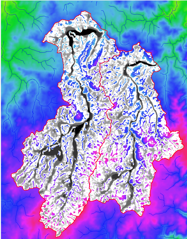 •Ability to automatically assign flats and pits as outlets. This is useful if you would like to map catchments related to local depressions or sinks.