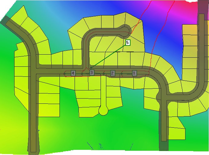 You can now see that 4 new outlets have been placed and mapped. Their spacing down the road will vary to ensure a similar drainage area.