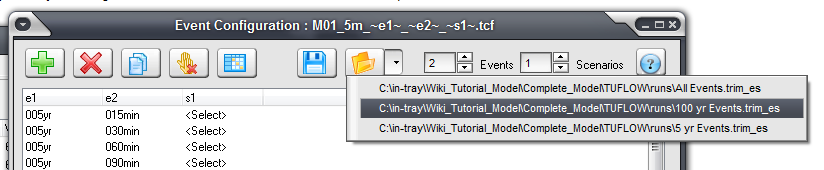 TRIM also allows you to save and load common event/scenario configuration files. The arrow near the open button allows quick access to recently used configuration files.