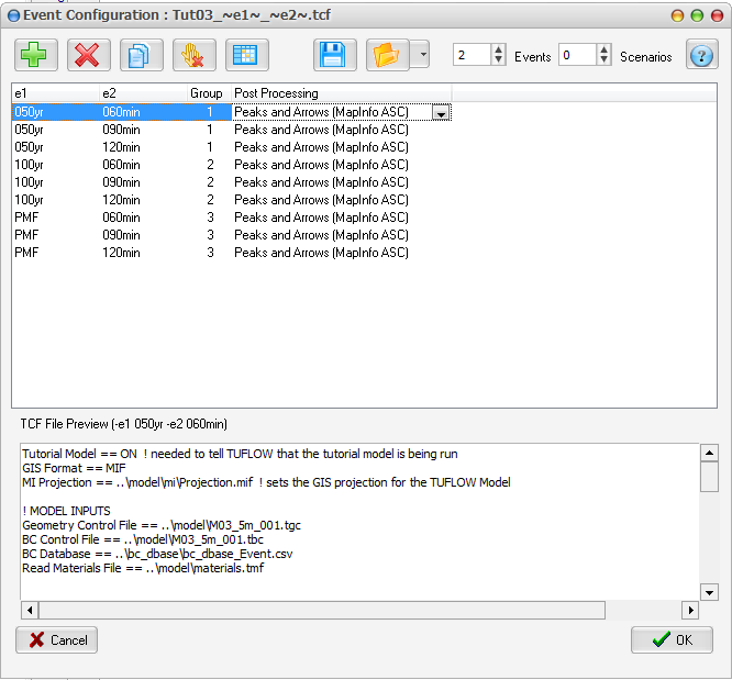 TRIM supports TUFLOW's event and scenario functionality.