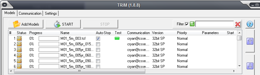The settings above are a global configuration, however, Auto-Stop can be turned on/off for individual simulations by clicking the Auto-Stop check box in the model queue. The default setting for the Auto-Stop check box are set in the Defaults tab.