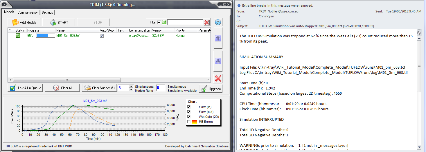 TRIM will automatically send email/Skype messages following an Auto-Stop based on your communication profile. Auto-Stopped simulations are treated as successful simulations for the purposes of notifications. The Simulation Interrupted summary will be included in the email/Skype message content.